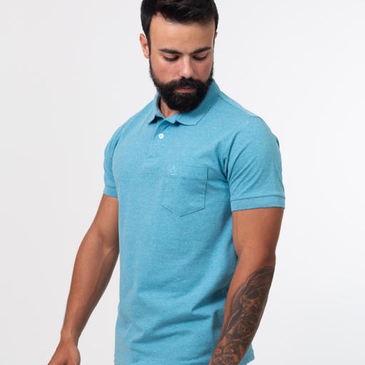 Camisa Polo Manga Curta Com Bolso, Slim fit basic, com algodão e poliéster.