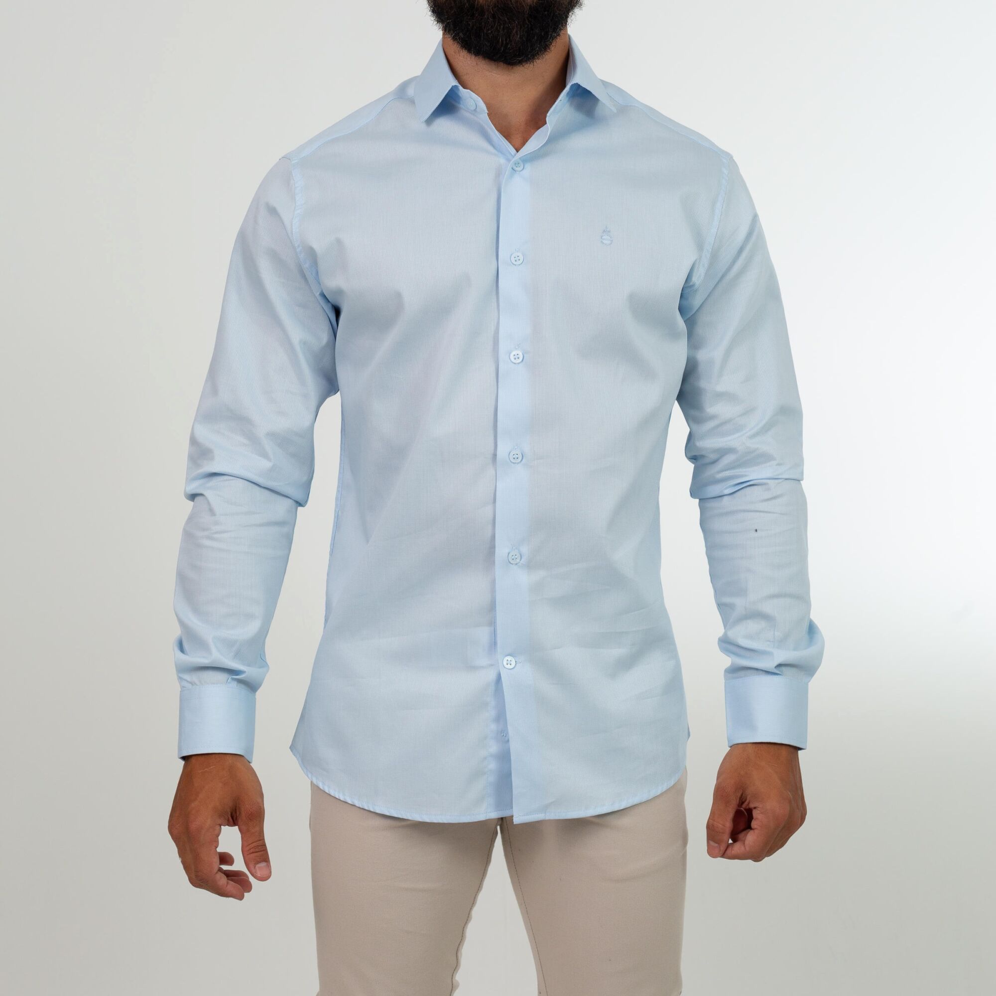 Camisa social M/L com algodão e poliéster que proporciona um caimento ajustado e maior durabilidade. Valoriza um visual elegante e contemporâneo.